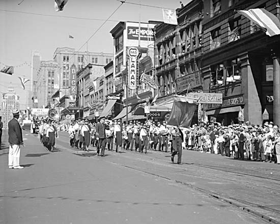 It wasn’t long before the General Gordon School Band was formed. They weren’t much at first with all the wrong notes but gradually he whipped them into shape and in 1928 they welcomed home runner Percy Williams who had just won a gold medal at the Olympics.
